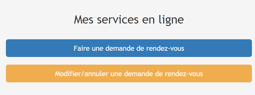 Choissiez pour quelle modalité vous souhaitez soumettre une demande de rendez-vous :