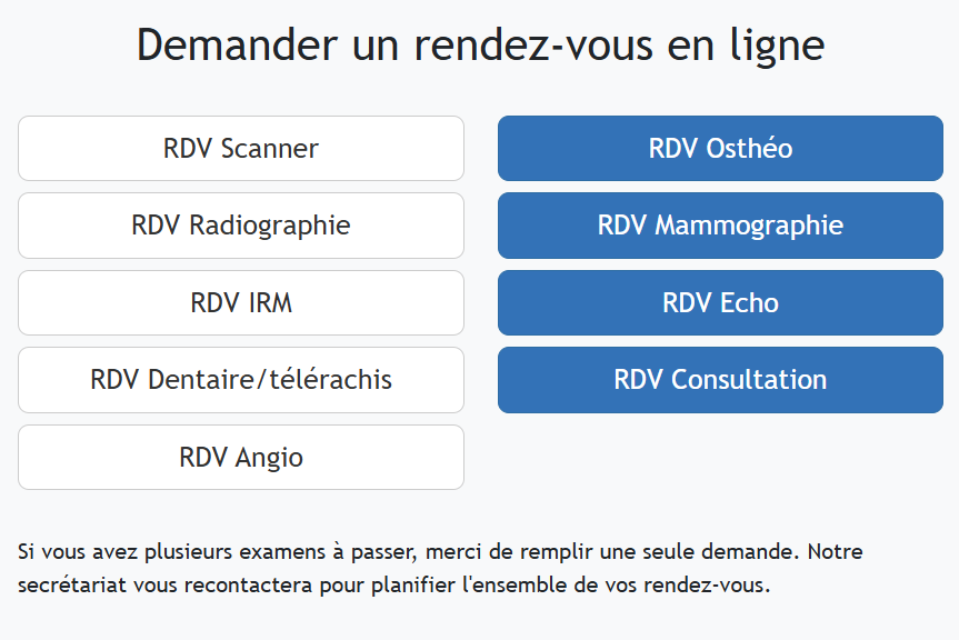 Choissiez pour quelle modalité vous souhaitez soumettre une demande de rendez-vous :